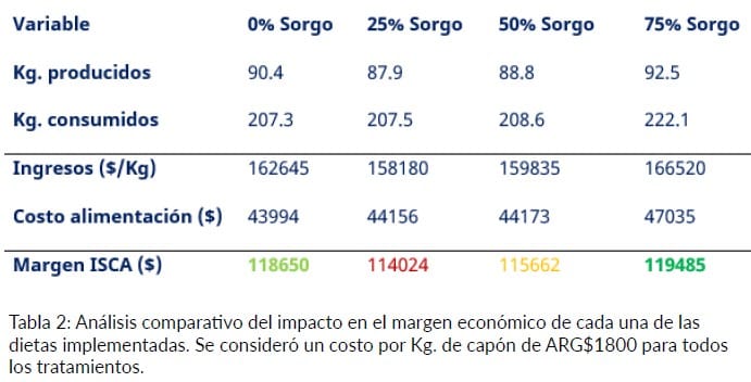 El análisis económico complementario confirma que las dietas con alto nivel de sorgo son productivas y también rentables: