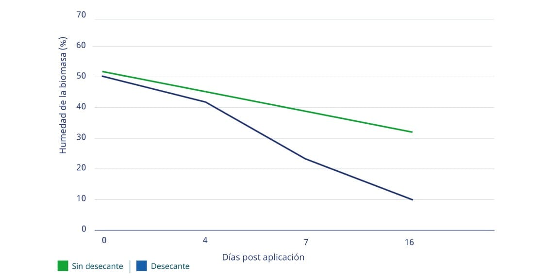 Al cosechar un cultivo desecado se evita que el grano incremente en su porcentaje de humedad, efecto que frecuentemente ocurre al incorporar a la cosechadora material verde (hojas, tallos y macollos atrasados en madurez). Sin embargo, en base a la información y resultados recopilados, el uso de desecantes en sorgo granífero no formaría parte de una estrategia para adelantar la cosecha, ya que estos no tendrían un mayor impacto en la disminución de la humedad del grano.